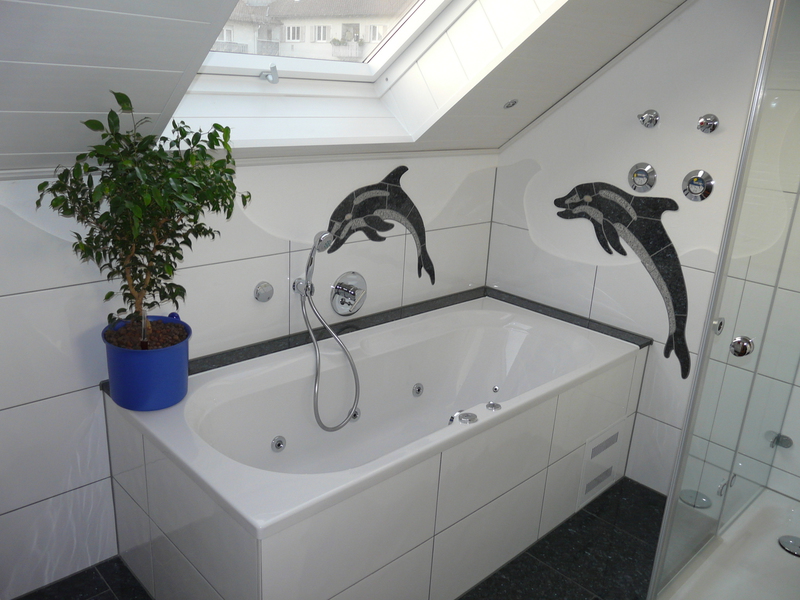 Alle Mosaiken, Bordüren, Simsen und Bodenebene Duschberreiche